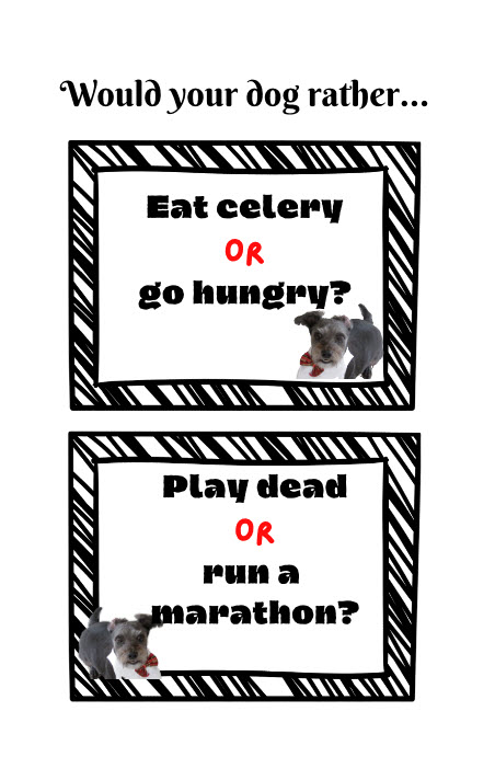 Would Your Dog Rather Game Book for Kids and Dog Lovers of All Ages, is an enjoyable book for kids of all ages. Entertain your kids during a long trip or enjoy hours of family fun as you spend hours determining the answer to such intriguing and vital questions as
