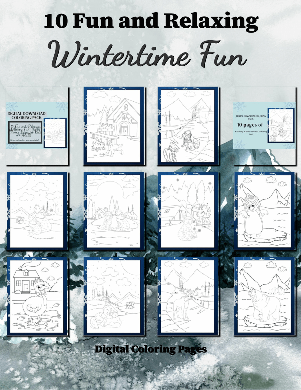 Take a break from the heat of summer and enjoy a bit of winter-themed fun with this enjoyable and relaxing collection of winter inspired coloring pages.