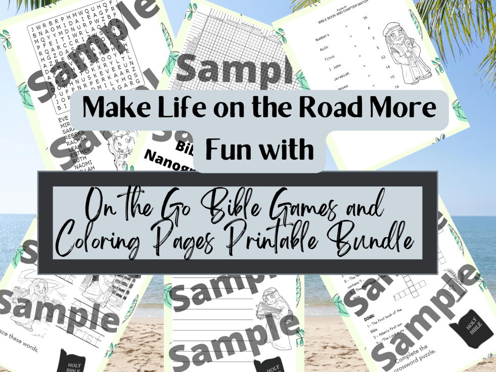 Use your time wisely and fight boredom as you build you or your child’s knowledge of the Bible with this boredom busting collection of printable Bible games and coloring pages. This Bible learning game set is great for the • Classroom • A rainy afternoon • Parties • Vacation Bible School • Or as part of a Travel Game Pack